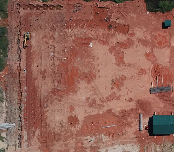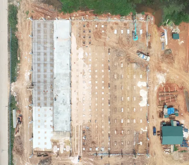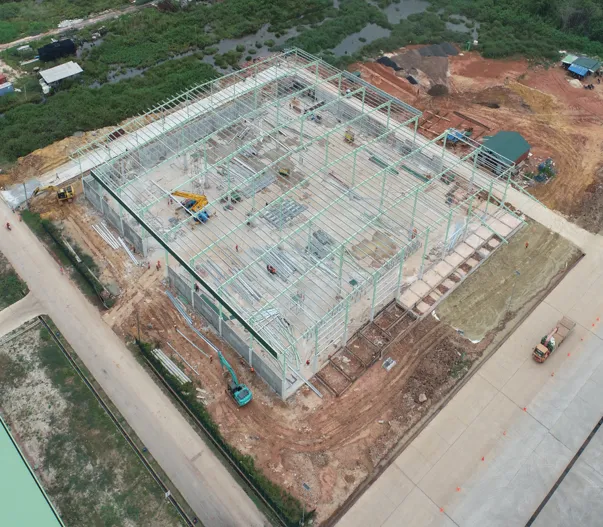 Pembangunan gudang material. Pekerjaan yang dilakukan meliputi pekerjaan sipil (pondasi), fabrikasi & pemasangan struktur baja, pemasangan atap & ventilator turbin.